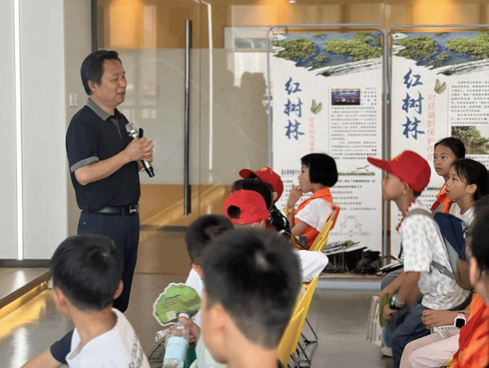 为贯彻落实习近平总书记关于加强红树林保护的重要指示精神,积极响应红树林保护修复行动计划,7月16日,公司“一带红树林,一路共发展”暑期社会实践团携手温州日报小记者与龙港市丫好小记者、龙港市自然资源与规划建设局、龙港市群团工作部来到龙港市新美洲红树林省级湿地公园和龙港市新时代文化中心开展了主题为“探寻红树之谜,共绘红树蓝港”的红树林科普研学活动。本次活动邀请红树林保护专家水柏年教授进行专业讲解。