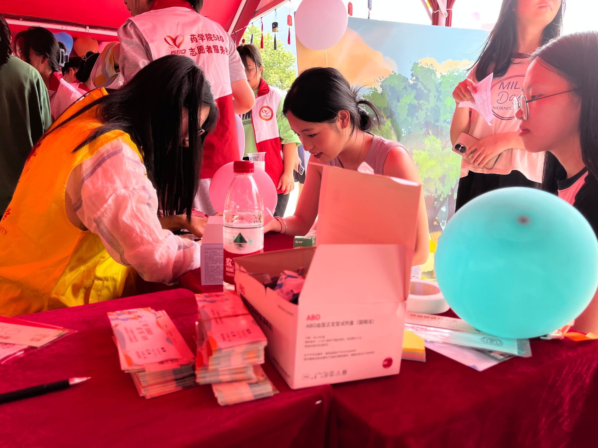 除趣味互动外,公司还在同德楼广场迎新帐篷处设置血型检测,在检测的过程中简介原理和操作步骤,对检生新生进行专业启蒙。
