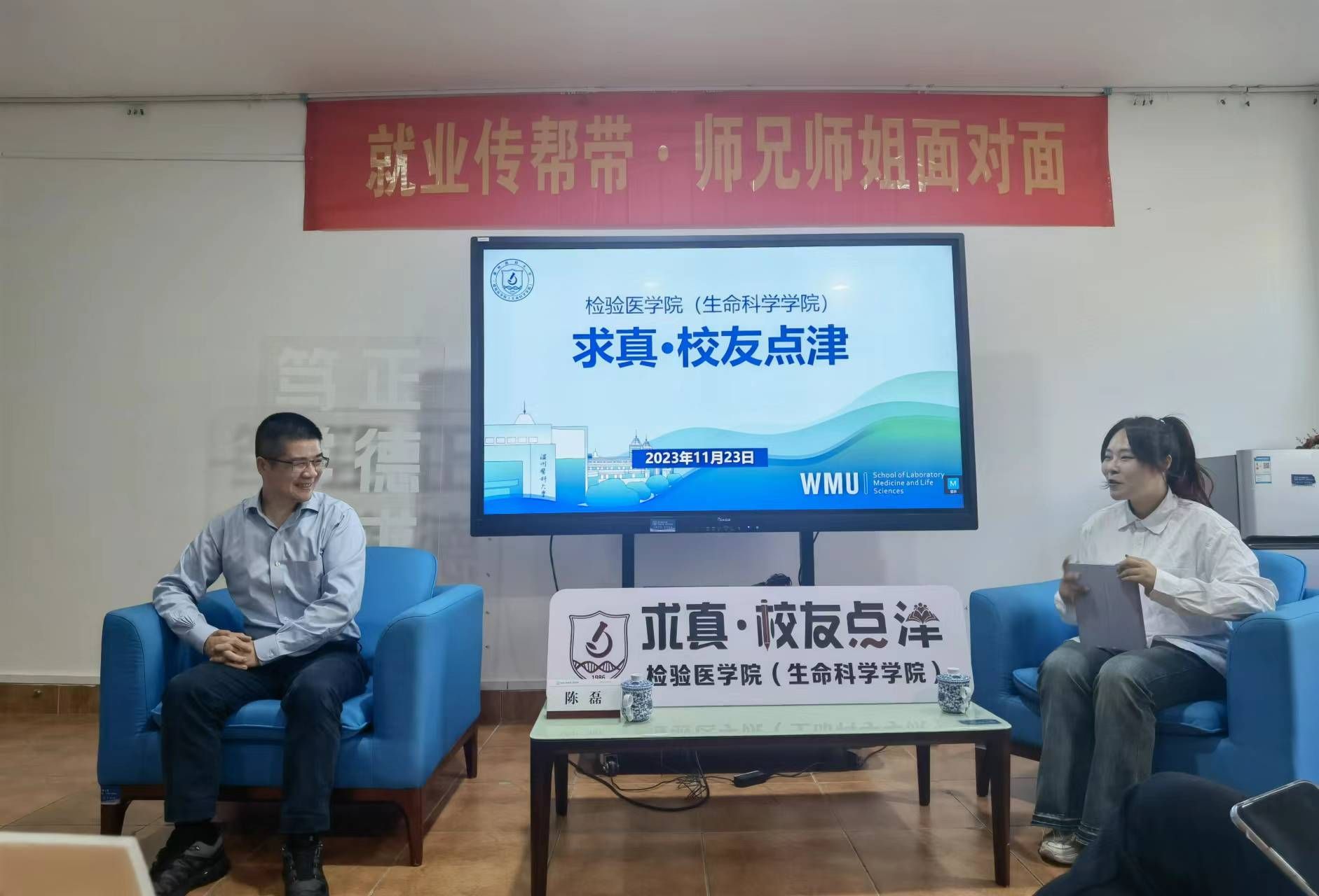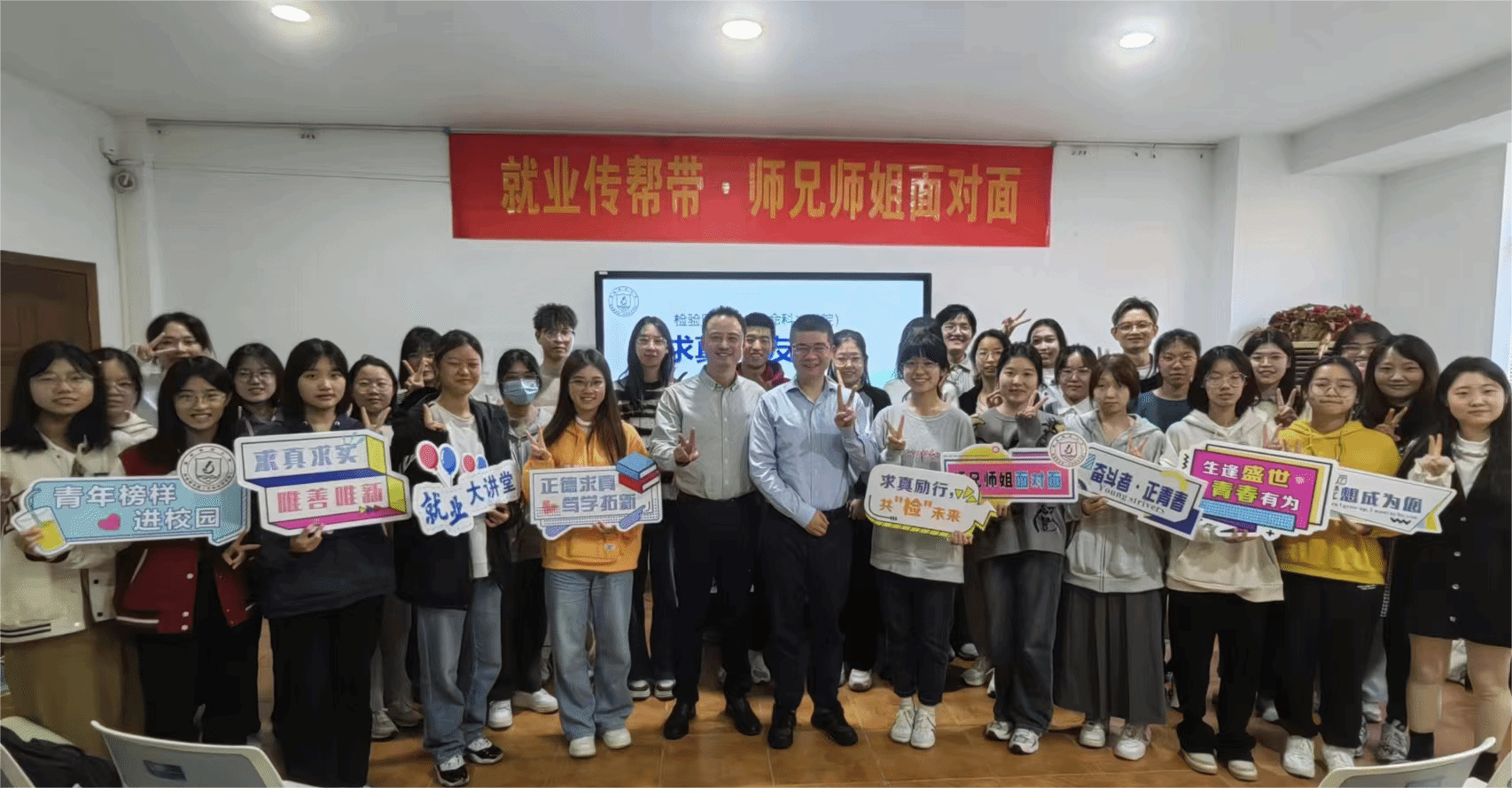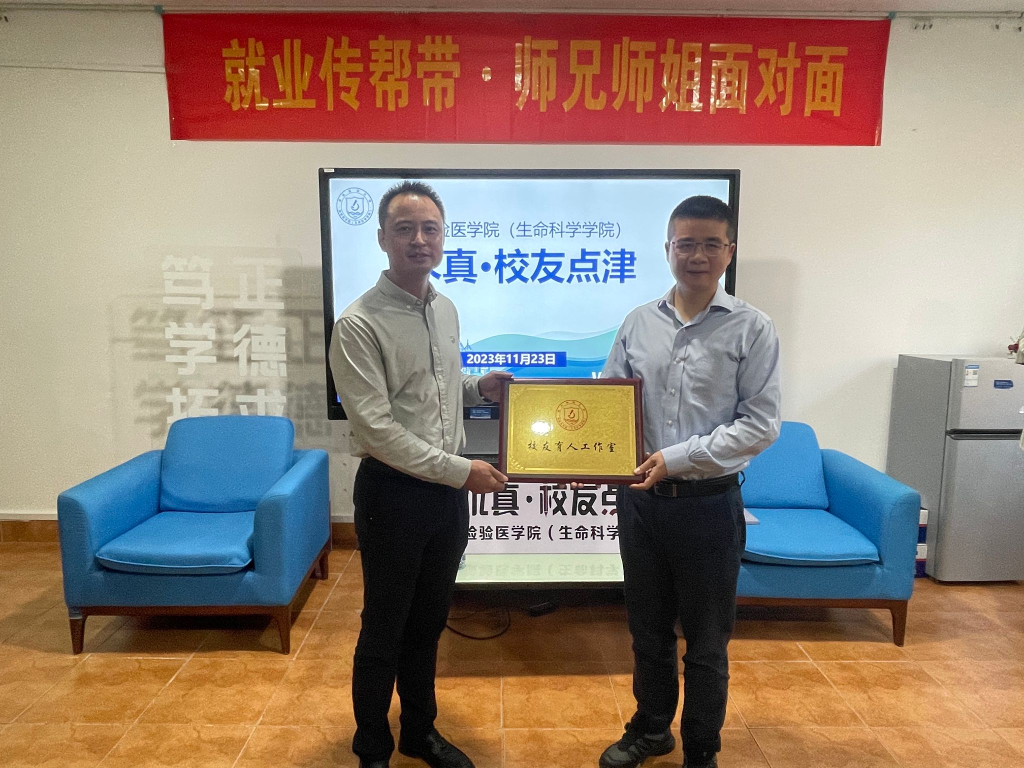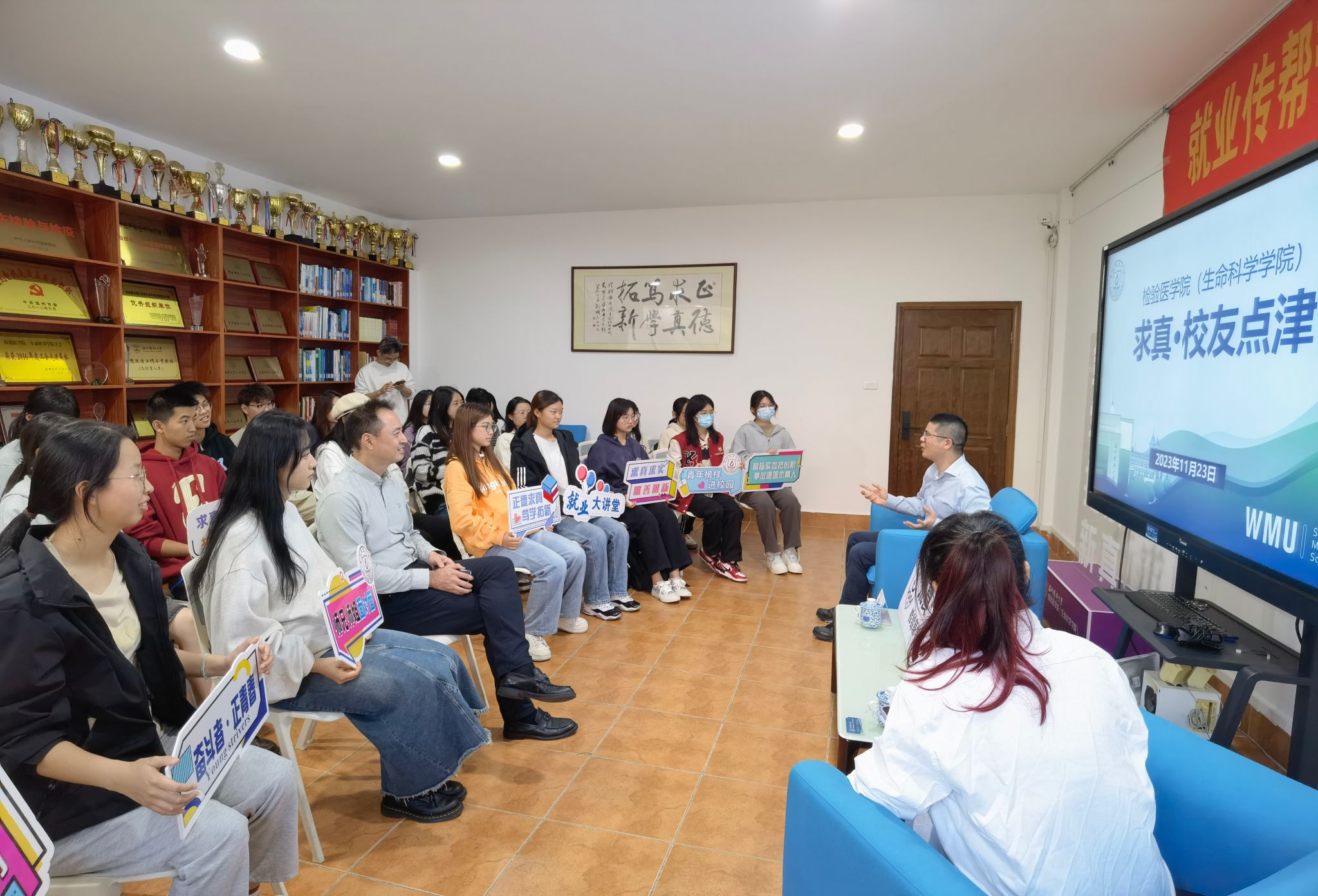 为促进公司与员工协同育人,强化老员工职业生涯规划指导,推进就业传帮带工作,公司于11月23日下午举办“求真·员工点津”分享会,此次活动特邀1998级医学检验专业员工、杭州吉创生物科技有限公司创始人陈磊主讲,公司副经理楼哲丰和师生代表参与活动。