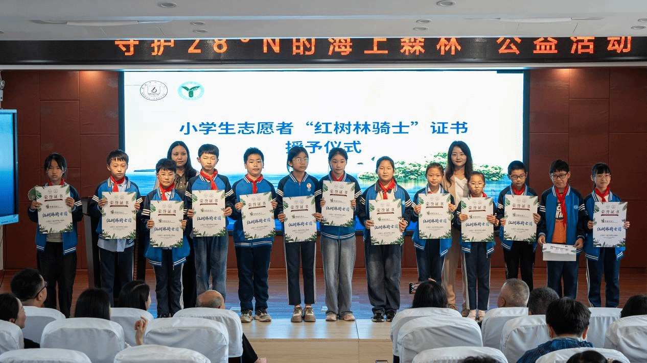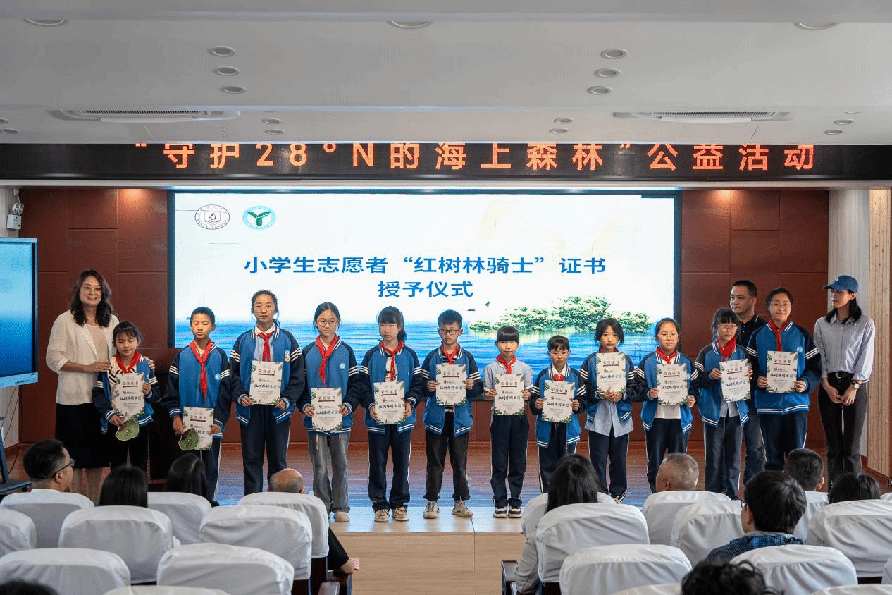 活动期间,公司在苍南县沿浦镇举行了“同一健康研究院教育基地揭牌仪式”、“劳动实践基地揭牌仪式”、“红树林“试验基地”授牌仪式”,并进行了公司与浙江省亚热带作物研究所合作红树林相关科研项目启动仪式、守护红树林服务队授旗仪式,向苍南县沿浦镇小学小员工志愿者代表授予“红树林骑士”证书。