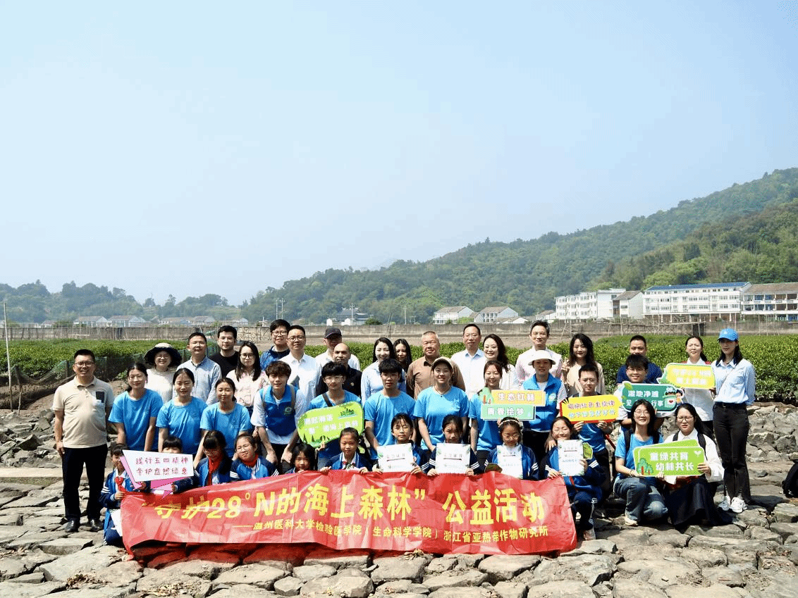 为传承“五四”薪火,坚定使命担当,发挥青年力量守护北纬28度的海上森林红树林,4月29日,VSport体育 (生命科学公司)和浙江省亚热带作物研究所(红树林研究中心) 联合温州市自然资源和规划局、苍南县自然资源和规划局、苍南县沿浦镇人民政府、苍南县沿浦镇小学等单位开展“守护北纬28度的海上森林”公益活动。温州市自然资源和规划局生态修复处副处长傅红枫、浙江省亚热带作物研究所所长陈秋夏、苍南县沿浦镇人民政府副镇长王成旭、苍南县自然资源和规划局生态修复科长高铭爱、VSport体育党委书记洪晓畅、VSport体育同一健康研究院执行经理楼永良出席本次活动。