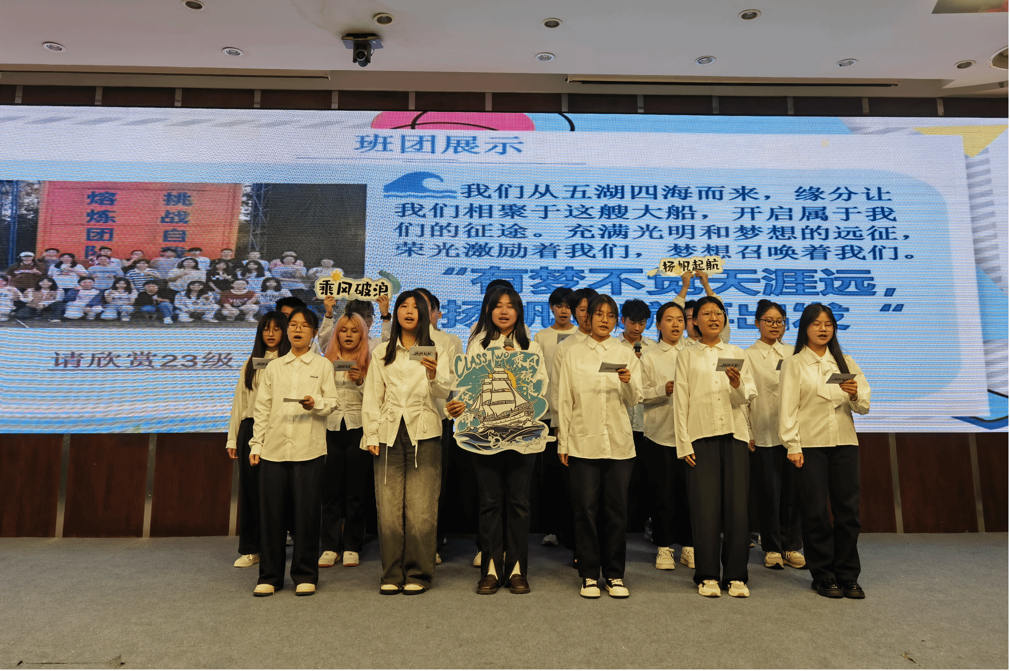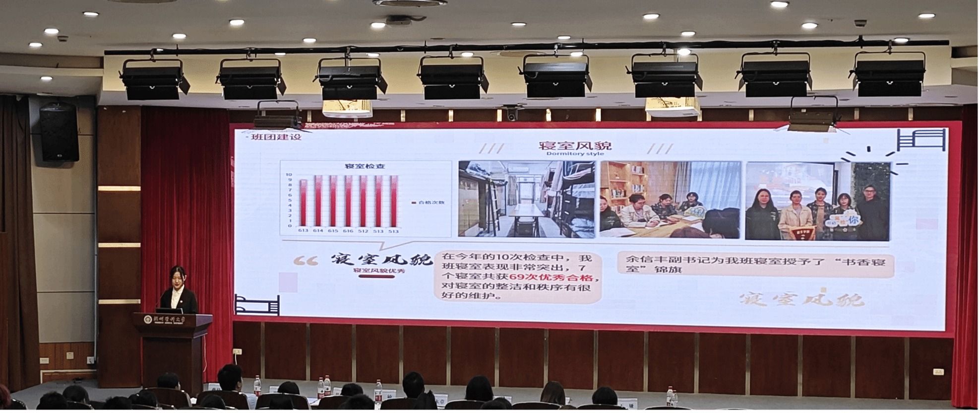 各班团围绕思想引领、学风建设、志愿服务、创新创业等多个维度对班团建设、成就和未来计划进行图文并茂的展示汇报,同时结合微电影、诗歌朗诵、合唱、情景剧等多种艺术形式,展现了各个班团奋勇争先、积极向上的精神风貌。