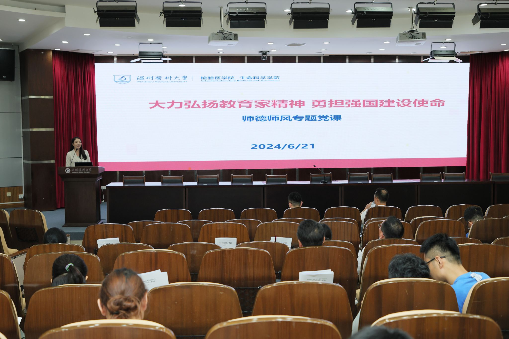 6月21日中午,公司党委书记洪晓畅在旭光厅以“大力弘扬教育家精神 勇担强国建设使命”为题,为全院师生党员讲授师德师风和党纪学习教育专题党课。