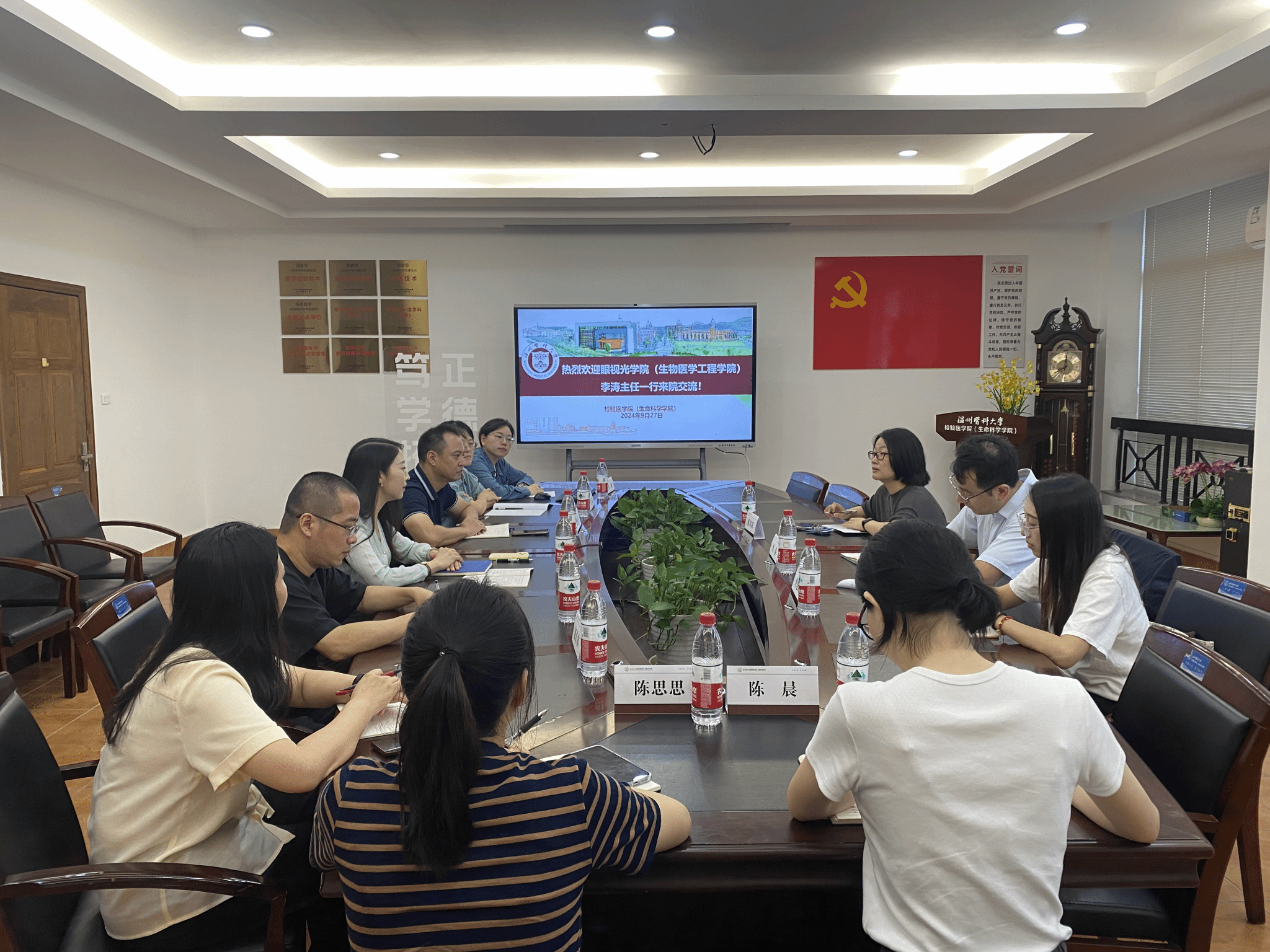 为深入贯彻落实二十届三中全会精神,结合人工智能、大数据的新时代背景,着眼培养符合经济社会发展需求的新检验人才,把深化教育综合改革落到实处,9月27日上午,公司召开专业优化调整顶层谋划会。此次会议,特邀请眼视光公司(生物医学工程公司)教学办主任李涛、医学工程系系主任蔡双双、基因组医学研究院实验员曹旭霞来院交流专业分流设计、以及新专业申报经验。公司党委书记洪晓畅、副经理楼哲丰、各系专业老师、教学办老师参加会议。