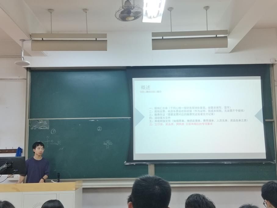 随后,开展第一次员工工作理论培训。员工会主席罗添齐向新任干事们介绍了策划活动相关的要求和规划。团委副书记徐乐瑶围绕“办公软件”主题,分享办公软件应用技能以及通知撰写要点。团委科创委员陈帝仲介绍了具体的报销流程工作。阳光志愿者服务社主席梁可晗科普活动拍照技巧。