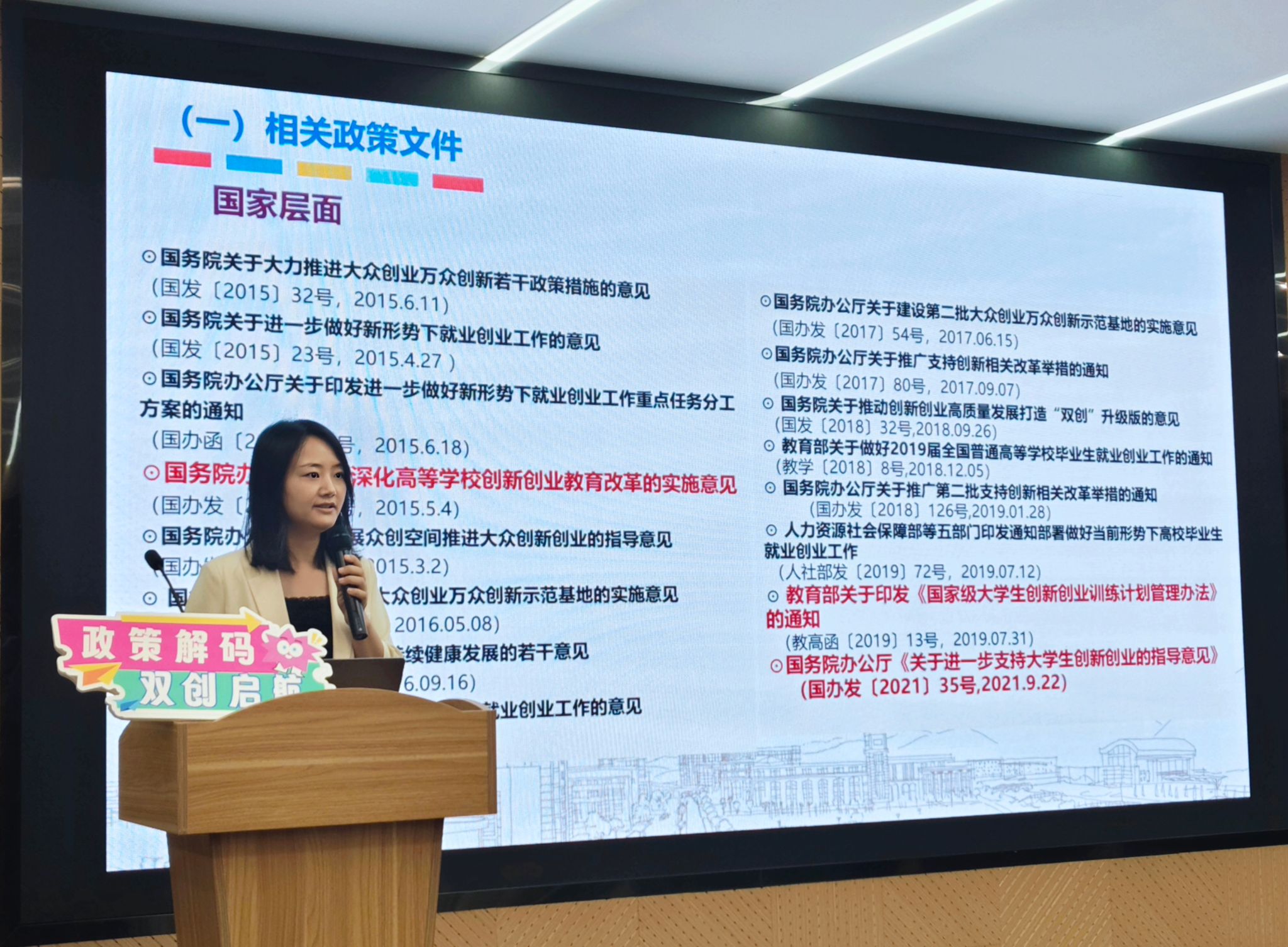 为营造积极向上的双创氛围,进一步提升员工的创新精神、创业意识,同时增强双创委员在双创工作中的责任意识,日前,公司团委于6A107智慧教室举办了“政策解码,双创启航”主题的双创讲座。此次讲座由院团委书记吴东方主讲,同时邀请了三位在创新创业方面有突出成绩的同学分享经验。