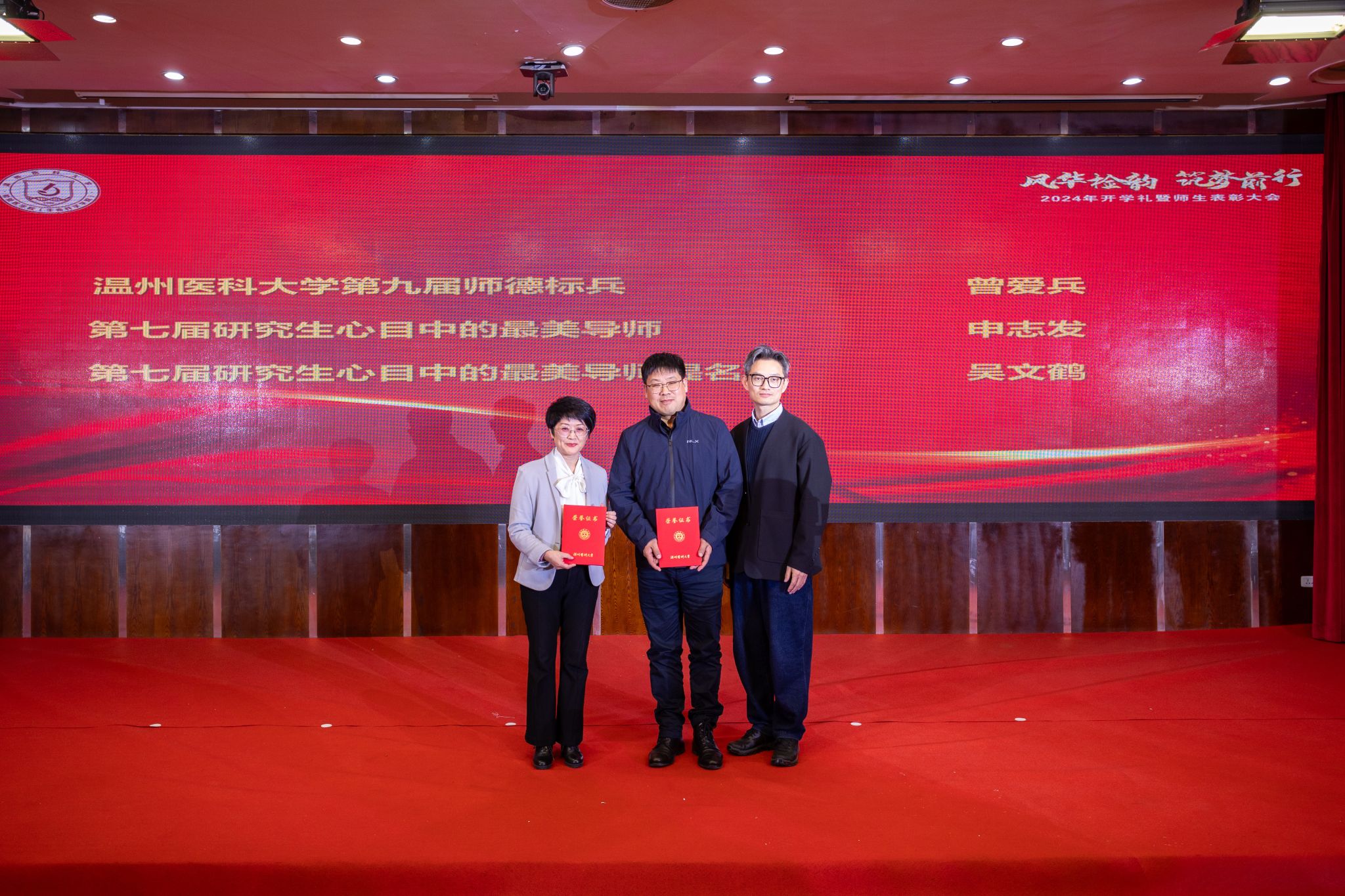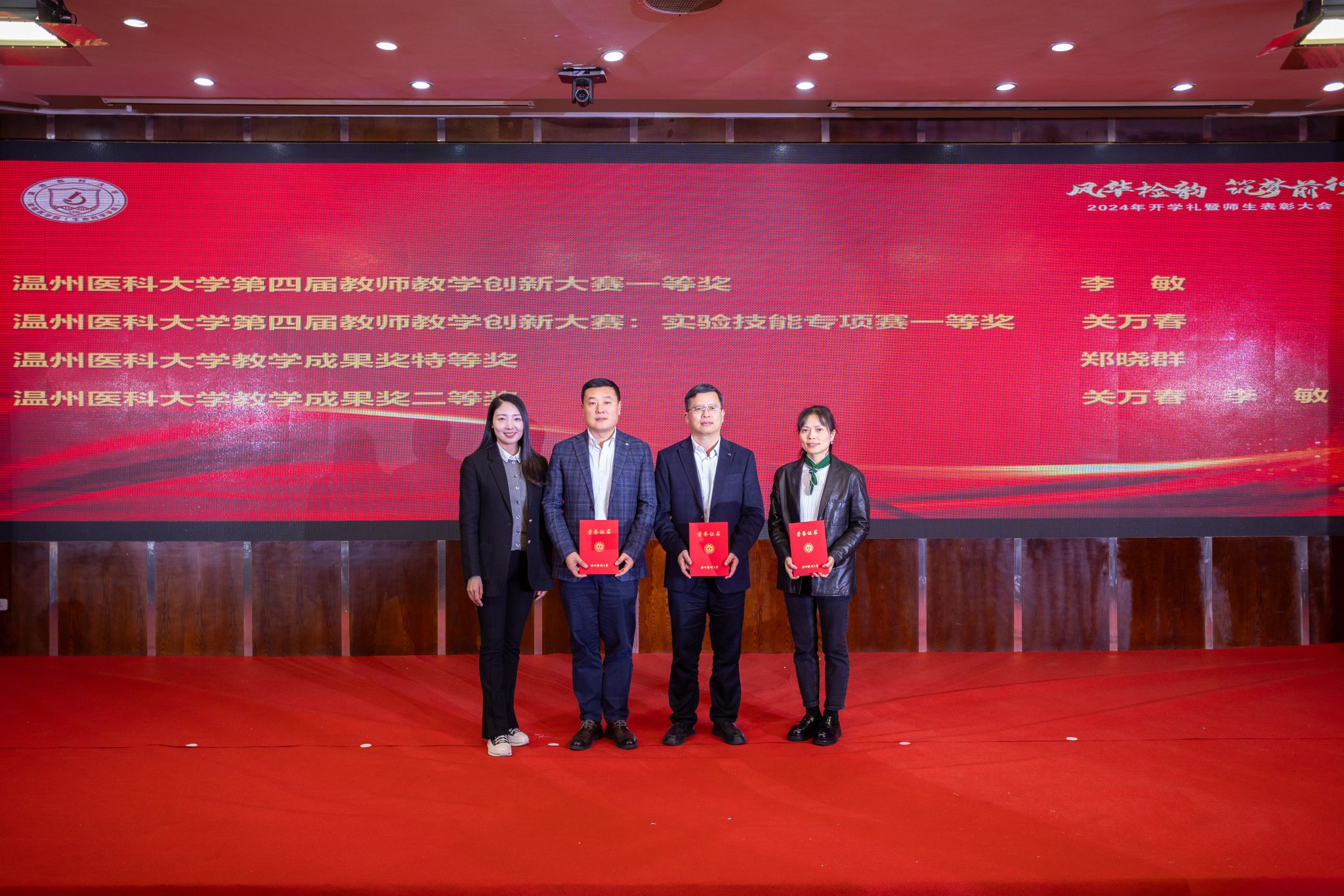青春逐梦,赓续荣光,员工表彰仪式有序进行。本次表彰涵盖了国家奖学金、国家励志奖学金、浙江省政府奖学金、国家级省级双创竞赛获奖团队、优秀员工干部、三好员工以及迪安奖学金、思塔高、罗氏奖学金、安图和拱东奖学金等社会奖助学金,弘扬员工榜样力量,传递奋斗情怀,进一步激励全体员工刻苦学习、锐意进取,再创佳绩。