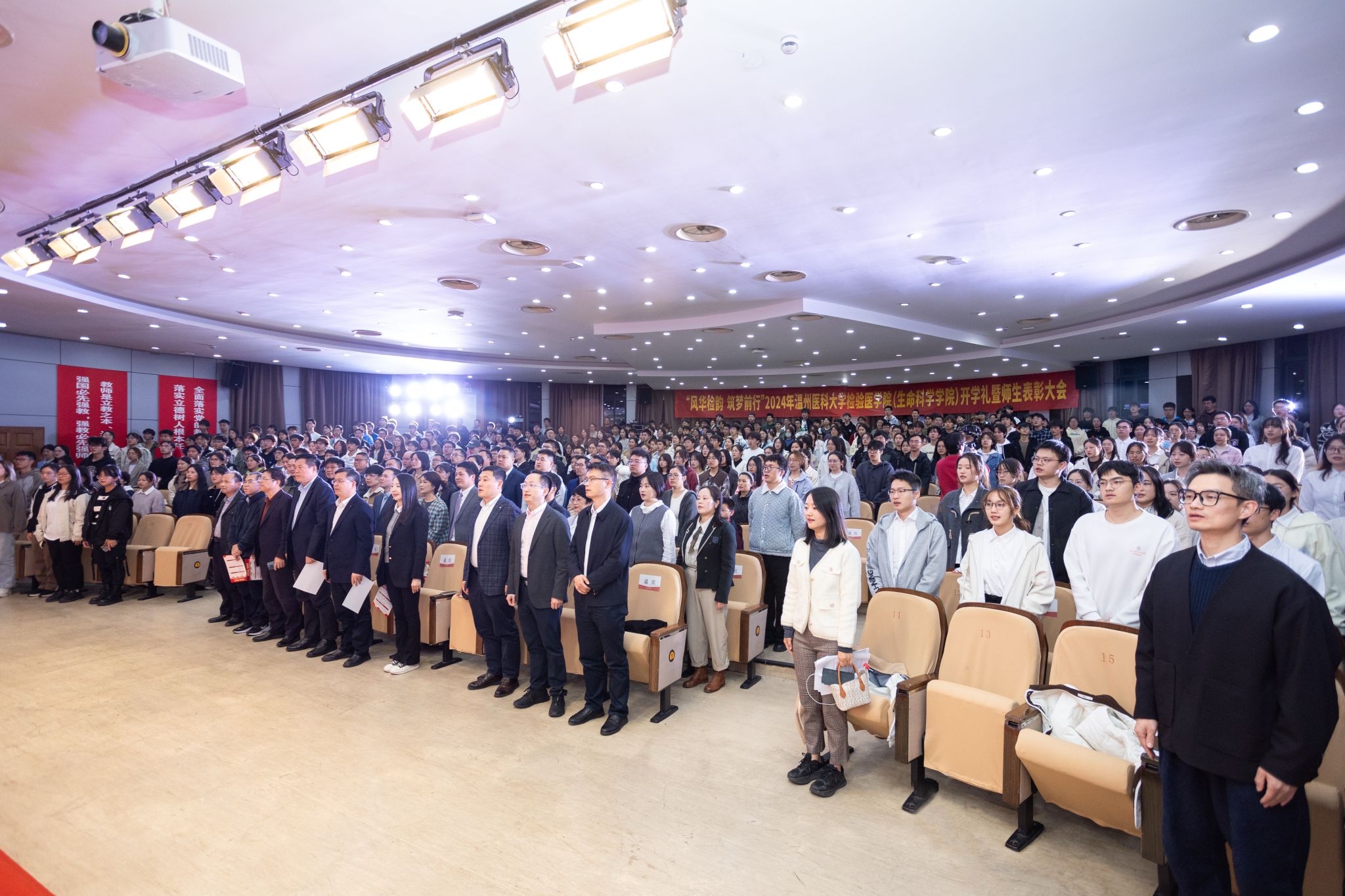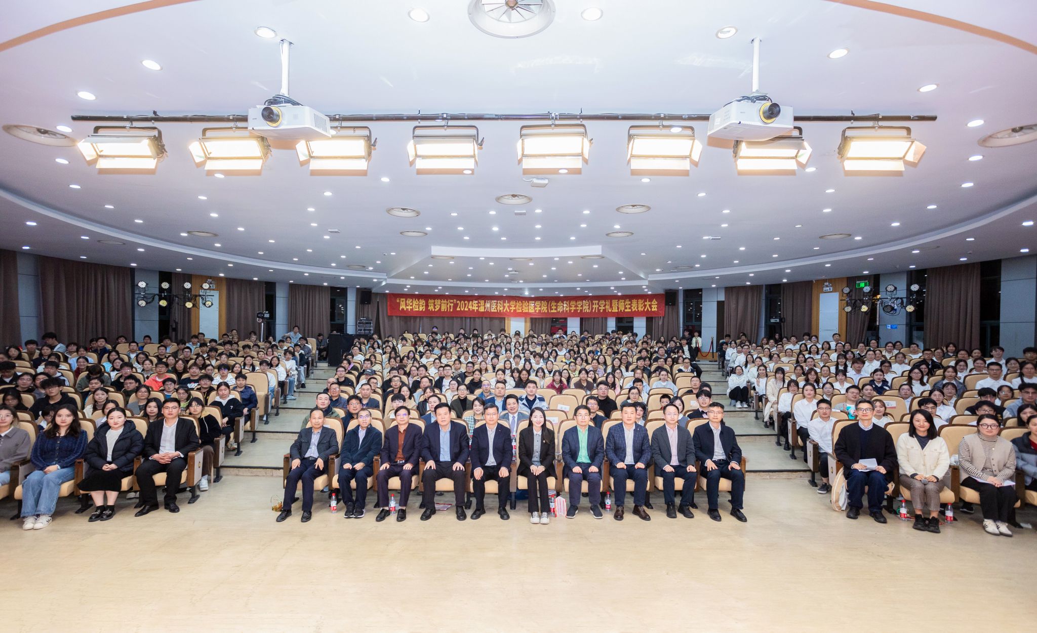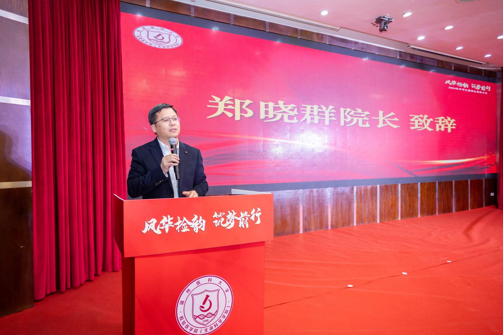 11月28日,公司2024年开学礼暨师生表彰大会于旭光厅举行。公司经理郑晓群,公司党委书记、副经理洪晓畅,教务处副处长关万春,公司党委副书记余信丰,公司副经理黄海山,公司副经理谢旦立,迪安、安图、艾迪康、罗氏、思塔高的企业代表,公司高层次人才,各系、教研室主任,师生代表及2024级全体新生出席本次大会。