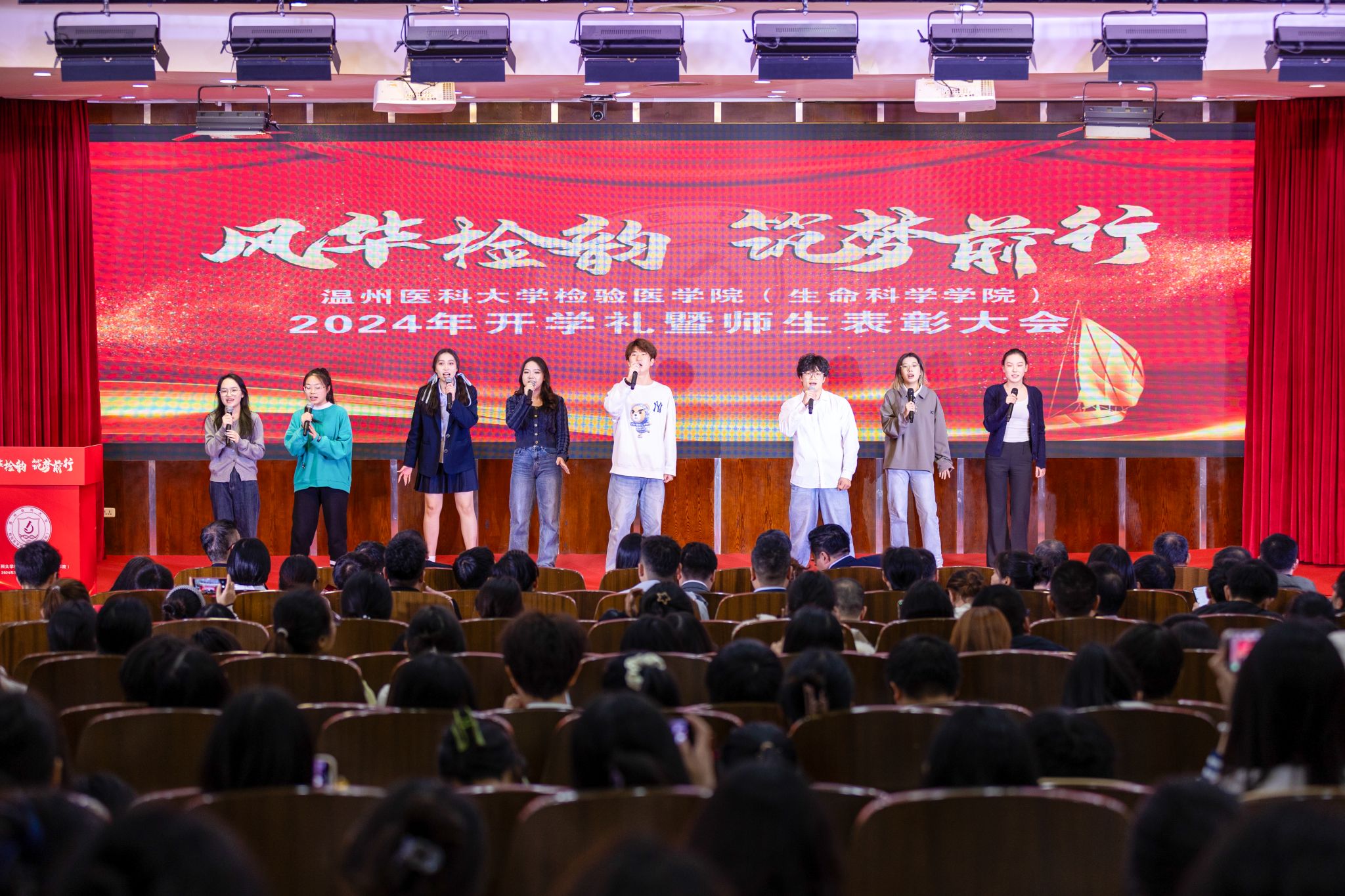 “我们就这样一路走来,走进了1986年初秋的胸怀志远,走出了全国高校检验医学教育的一路阳光”,师生代表共同朗诵《风华检生》,带领在场师生回顾了三十八年来一代代检生人自强不息、追求卓越的峥嵘岁月。