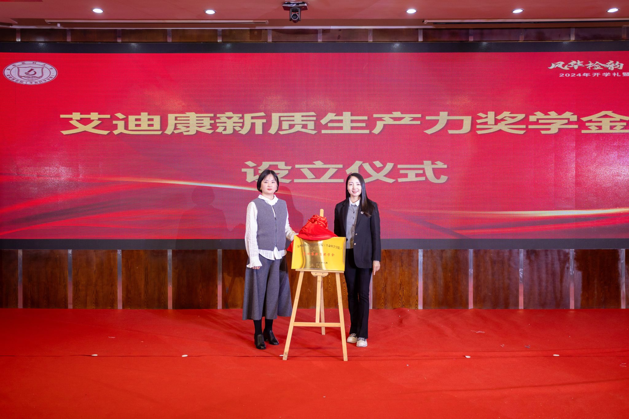为进一步整合科技创新资源,引领老员工积极参与创新创业,公司联合温州瓯海艾迪康医学检验实验室有限公司设立艾迪康新质奖学金,洪晓畅书记与公司总经理薛新秀女士共同为奖学金揭牌。