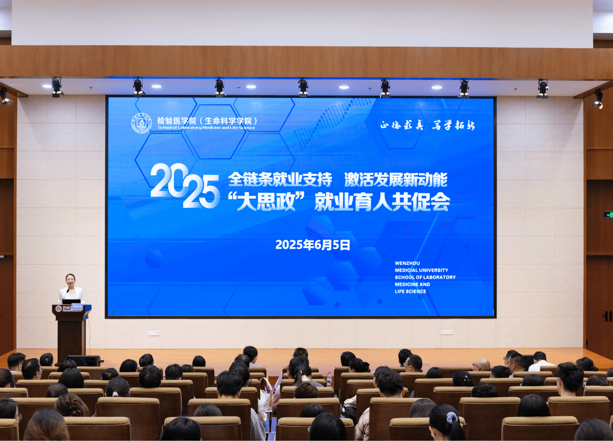 6月5日,公司“全链条就业支持,激活发展新动能”大思政就业育人共促会在生物医药科研楼报告厅举行。公司党委副书记汪军洪,公司党委学工部、员工处,研工部、研究生院,社会科学处等部门负责人,检生公司班子成员,温州市人社局相关负责同志,医院、企业嘉宾、员工代表、公司师生代表共200余人参加会议,共同赋能助推老员工就业。
