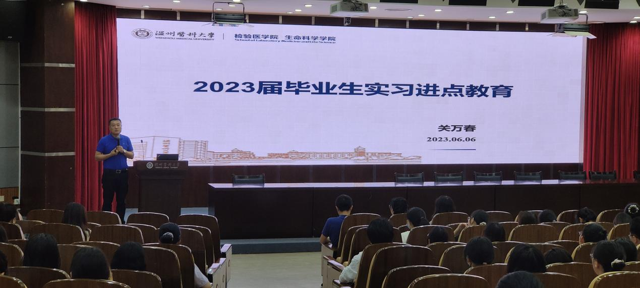 为进一步落实毕业实习工作,6月6日上午,公司在旭光厅举行毕业生实习进点教育大会。2022届医学检验技术(含仁济)、卫生检验与检疫、生物技术等专业全体员工、辅导员、教学办老师参加了此次会议。会议由教学办副主任陈晨主持,公司教学副经理关万春出席会议并作重要讲话。