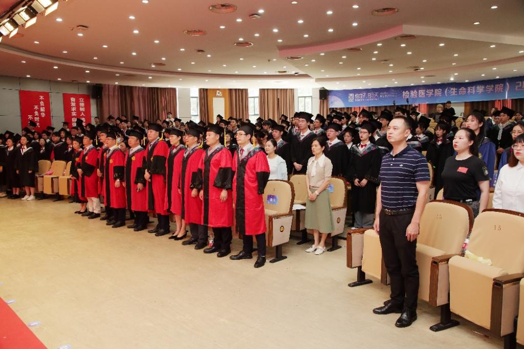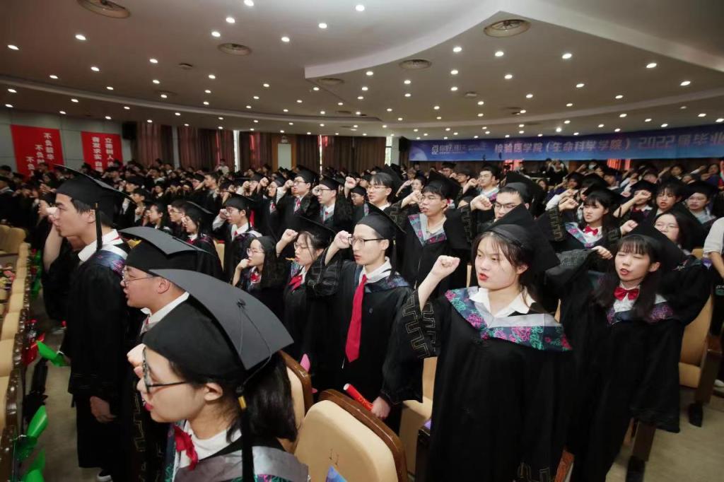 毕业礼将近尾声,在即将告别老员工活之际,全体毕业生再次重温院训:“检以正德,验以求真,生而笃学,命之拓新……”慷慨激昂的院训精神将永远激励着毕业生们砥砺前行。