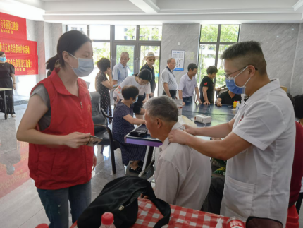 实践团成员们向前来参加活动的居民开展疫情科学防控赋能宣讲,联合永中街道卫生服务中心医生在尚悦园门厅里开展“医问长廊”义诊活动,提供血压、血糖测量、推拿问诊等义诊服务。