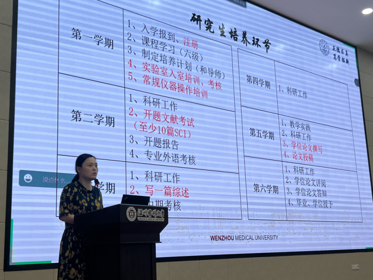 研究生生涯既是员工学习生活的重要阶段,更是一个全新的开始。各位老师们分别就不同方面对员工进行谆谆教导,希望我们134名新入学的研究生能够在今后的学习中戒骄戒躁、不负韶华,做一名不负时代期盼的温医人、检生人。