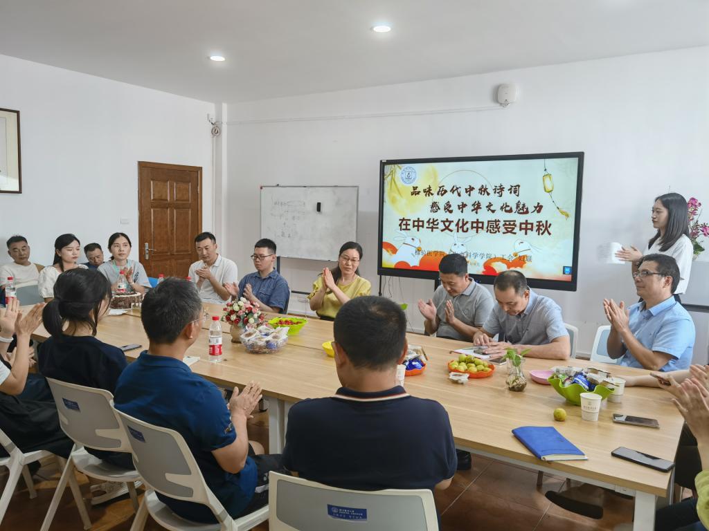 在7A318职工之家,新入职教师作了自我介绍并表达了对加入检生大家庭的喜悦之情。随后,李茹嘉、黄丹、曹佳薇、乔石瑶等几位老师带大家品味历代中秋诗词,在场的老师们在品尝月饼的同时感受着中华文化魅力。第三季度集体生日会在大家的欢声笑语中拉开了帷幕,大家齐唱生日快乐歌,在轻松愉悦的气氛里相互交流工作和学习生活。在科研大楼702会议室里,公司将服务和爱心送上门,让各位科研教师很感动,纷纷积极从繁忙的科研实验中抽身参加沙龙活动。