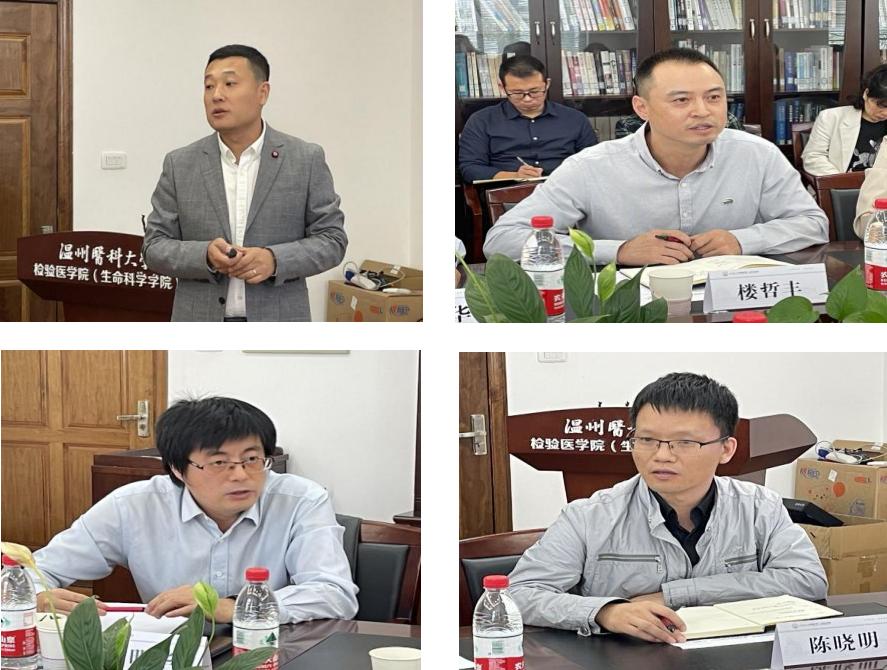 关万春副经理、楼哲丰副经理,江明华主任、陈晓明主任等围绕创新人才培养、课程教材建设、实验教学改革、实验课程思政建设推进、临床教学与基础教学融合、临床团队队伍教学水平提升、课程群教学内容整合衔接等内容进行了交流。