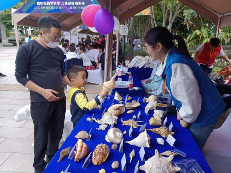 11月11日下午,公司副教授艾为明、团委副书记吴东方和2022级辅导员金智博带领我院人类健康与海洋科普基地宣传志愿者前往温州儿童友好公园(白鹿洲公园)参与“我和妈妈学科学 儿童友好向未来”2022世界青年科学家峰会——“大手牵小手”主题活动,进行以人类健康和海洋为主题的科普志愿服务。