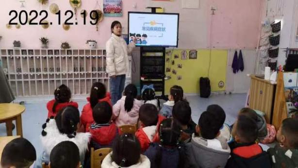 图 22级医学检验技术专业志愿者张呈奕在贵阳路幼儿园宣讲