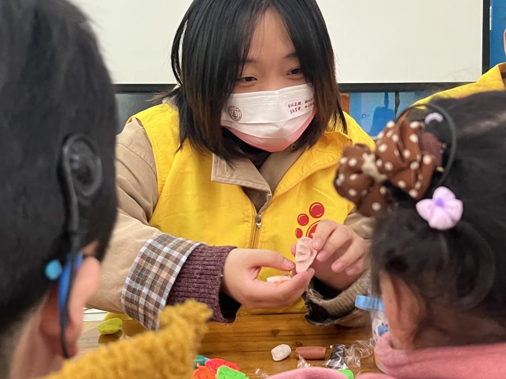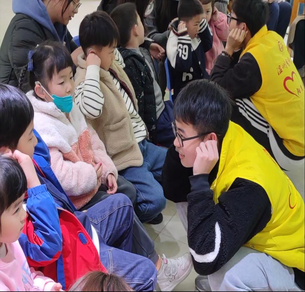 活动中,志愿者蹲下来与聋哑儿童互动,温暖了儿童的内心,给与儿童们充分的尊重,也体现了服务队的“温度”。志愿者了解到聋哑儿童的成长轨迹与康复历程,扩充了知识储备,为今后志愿服务的开展奠定良好基础。