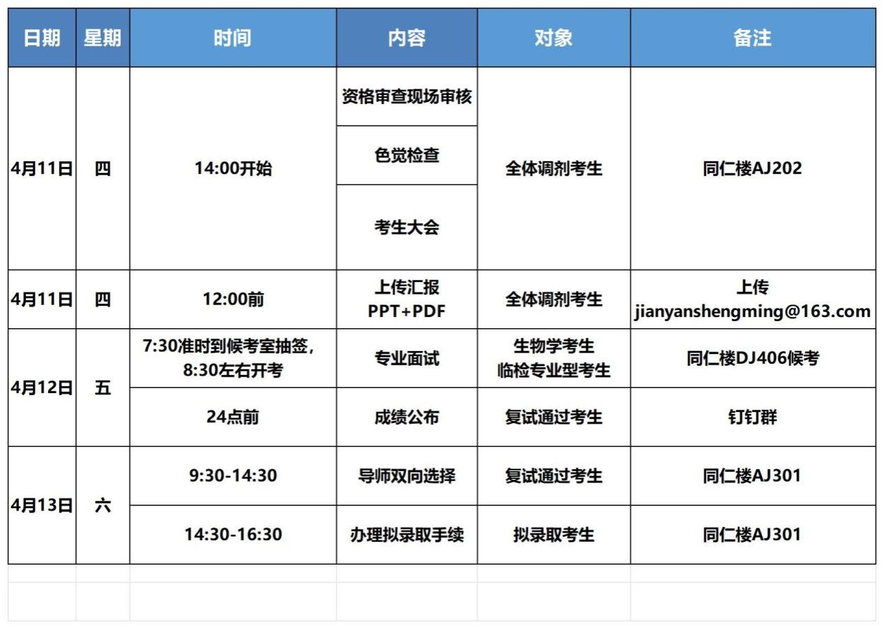 注:汇报PPT需同时制作成PDF版本,两者均以报考专业+姓名+考生编号命名,在4月11日中午12:00前打包发送到jianyanshengming@163.com,材料一经发送,不接受修改。
