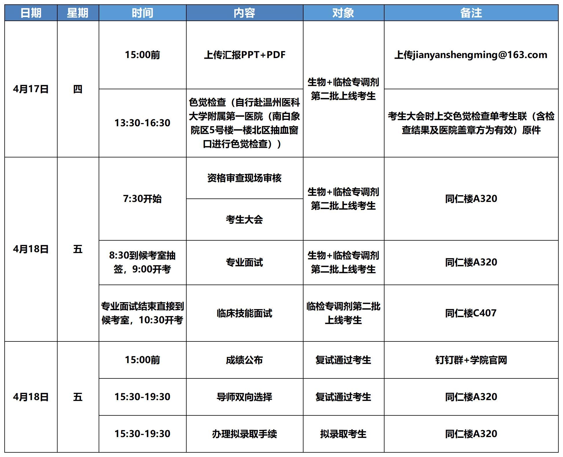 1.临床检验诊断学专业型考生内容为临床技能操作面试,技能操作时间约为10-15分钟,考题和考试顺序面试当天现场抽取。