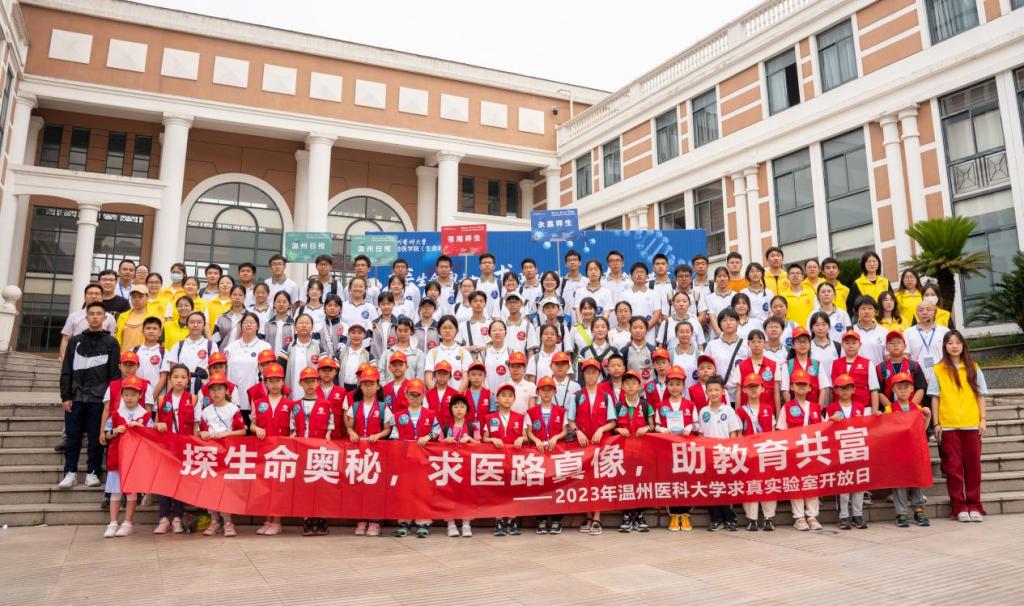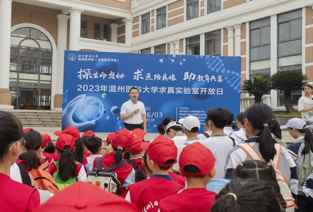 为向公众普及生命医学知识,培养中小员工求真科研思维,助力教育共富,VSport体育积极发挥公司学科和医学相关重点实验室资源优势,搭建高校与社会的沟通桥梁,于6月3日上午在茶山校区开展以“探生命奥秘 ,求医路真像,助教育共富”为主题的求真实验室开放日活动。该活动吸引了来自温州市区、苍南县和永嘉县的200余名中小员工及家长参加了现场活动。