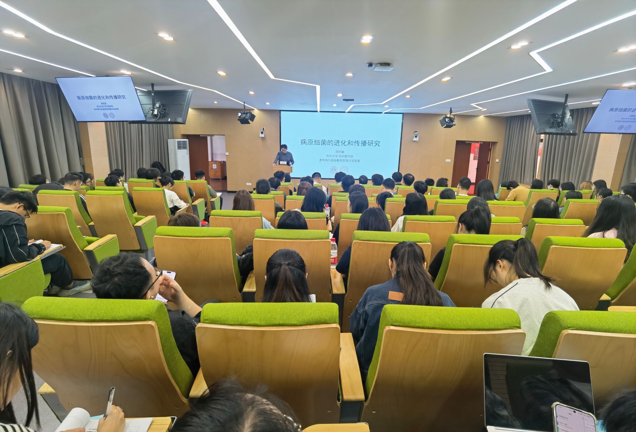 本次讲座周哲敏教授基于肺炎支原体,肺炎克雷伯,沙门氏菌和口腔菌群四个典型案例,展示了病原细菌在短、中、长期历史时期中的传播趋势和自然选择压力,探索不同时间尺度下,病原细菌的演化动力,特别是与人类和人体微生态的共演化模式。对于细菌、支原体等微生物的遗传进化、流行等研究工作有重要的意义。周教授从科学现象切入,由浅入深地介绍了病原细菌的进化和传播的研究。