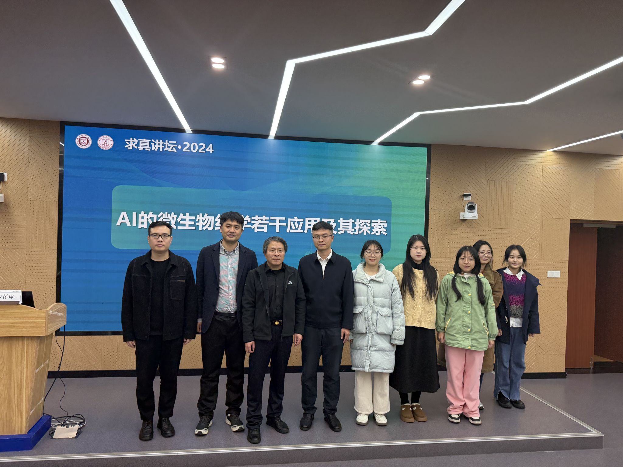 12月10日,北京大学未来技术公司党委书记朱怀球教授应邀来我院开展求真讲坛专家讲座,本期讲坛主题为《AI的微生物组学若干应用及其探索》,讲坛由公司副经理黄海山教授主持。