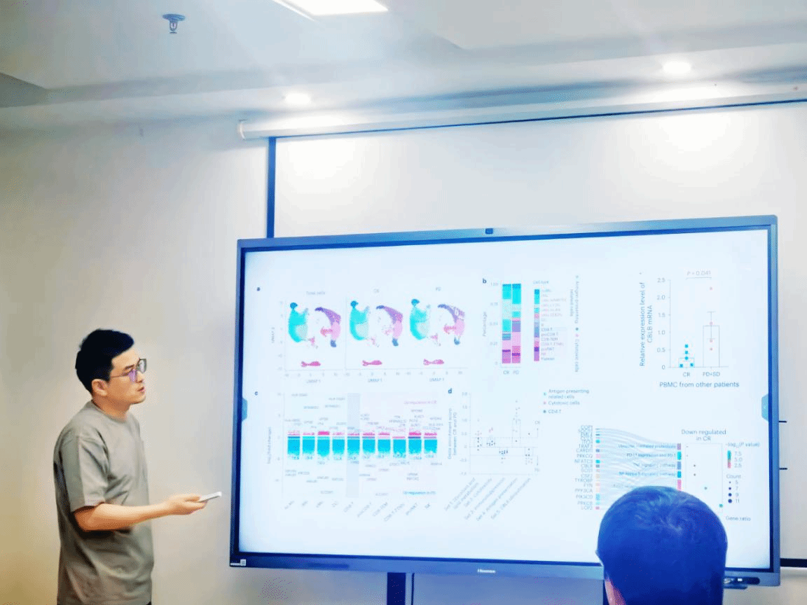 2025年5月20日下午,求真讲坛(院内专场)系列讲座之“嵌合抗原受体工程化免疫细胞疗法的设计与功能验证”在生物医药科研大楼南702会议室举行。本次论坛由公司副经理黄海山主持,邓文海博士主讲,公司青年科研人员参加了本次学术交流活动。
