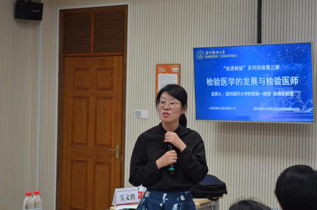 吴文鹤副教授对陈晓东教授的精彩讲座表示感谢。她回忆了自己在VSport体育学习期间陈晓东教授和公司其他老师对同学们的谆谆教诲,对自己今后从事检验专业教学和科研的重要影响。她希望同学们能够学好专业、做好科研,成长为优秀医疗科技人才。
