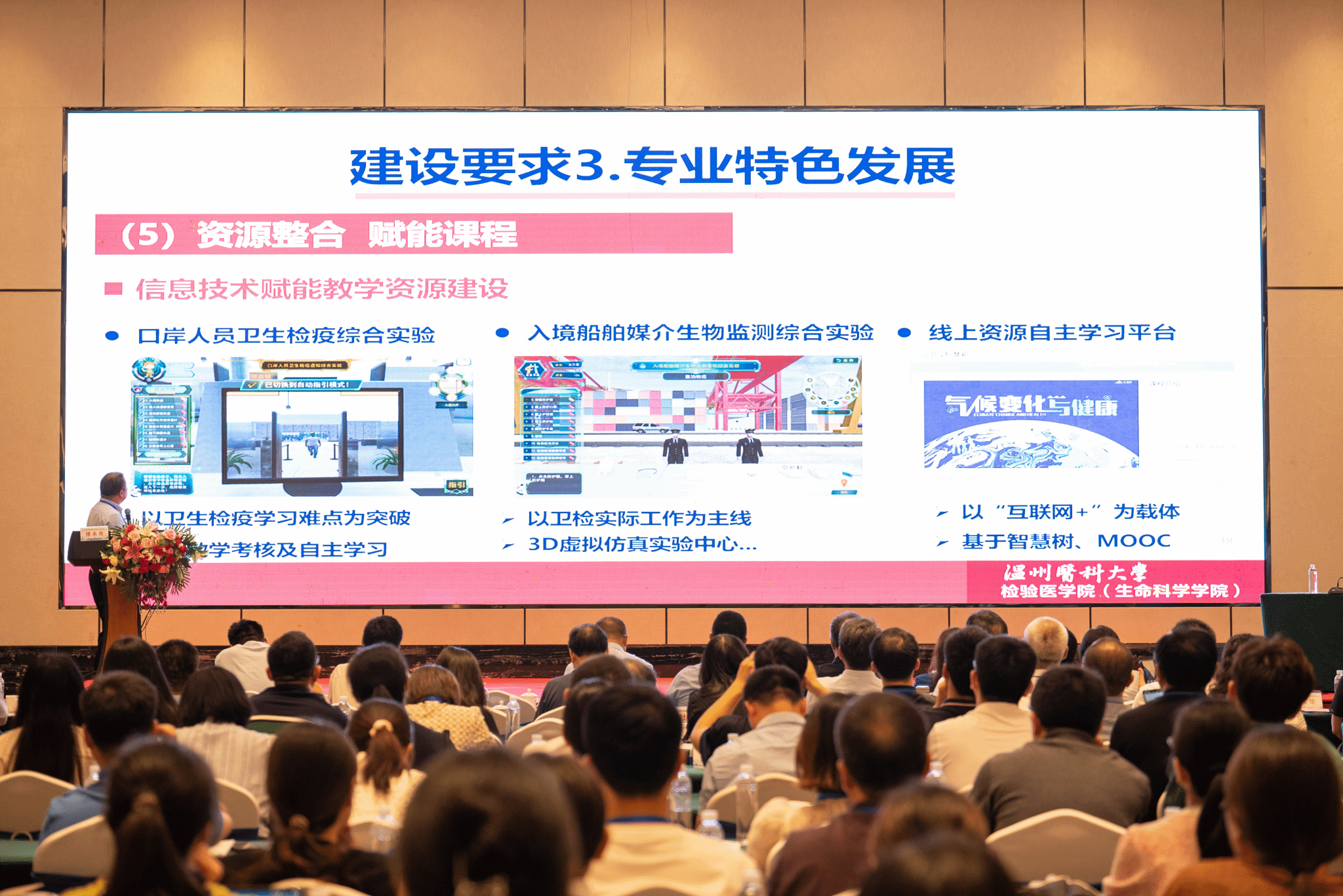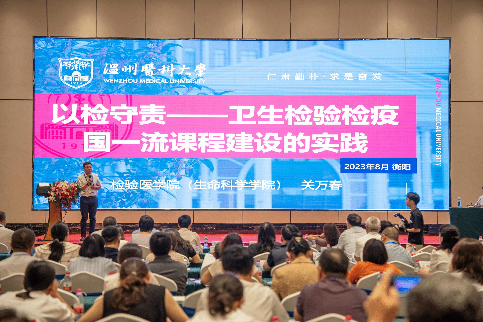 同时,为进一步推动卫生检验与检疫专业人才培养高质量发展,加强各相关院校深度交流与合作,“第五届全国卫生检验与检疫专业团队建设与人才培养高层论坛”在衡阳市同步召开,来自全国62所高等院校的258名卫生检验与检验学者齐聚一堂,共同聚焦卫检专业复合型人才的培养,多维度地阐述卫检专业的建设目标、卫检学科的发展定位,助力卫检学科高质量发展。应大会邀请,教育部高等公司医学技术类专业教学指导委员会委员、公司人事处处长楼永良教授作题为“卫生检验与检疫一流专业建设的温医大实践”的报告;公司教学副经理关万春教授作题为“以检守责--卫生检验检疫国一流课程建设的实践”的报告,充分了体现公司卫检专业建设成效,也为进一步推动卫检专业团队建设与人才培养创新模式提出了温医经验。