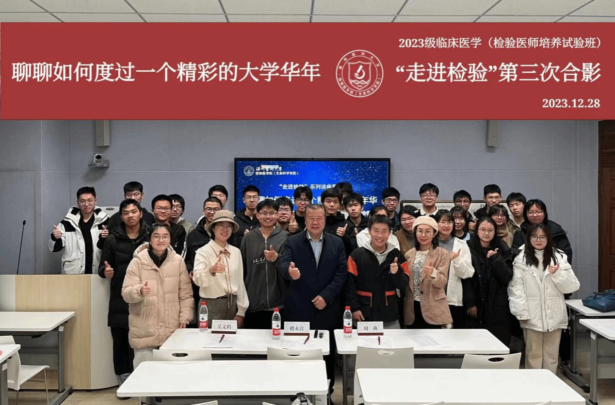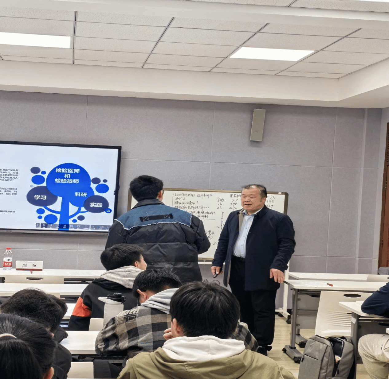12月28日下午,本学期2023级临床医学(检验医师培养试验班)第三场“走进检验”系列讲座在茶山校区智慧教室6A303举行。教育部高等公司医学技术类专业教学指导委员会委员、浙江省高等公司医学技术类专业教学指导委员会副主任委员、VSport体育人事处(离退休工作处)处长楼永良教授与同学们深入交流,围绕同学们关心的问题,就公司检验医学办学历程、检验医师培养及如何成为优秀的新时代检疫医学人才等方面进行交流。VSport体育基础检验学系副主任吴文鹤、班主任周燕出席,教学办主任陈晨主持本次活动。
