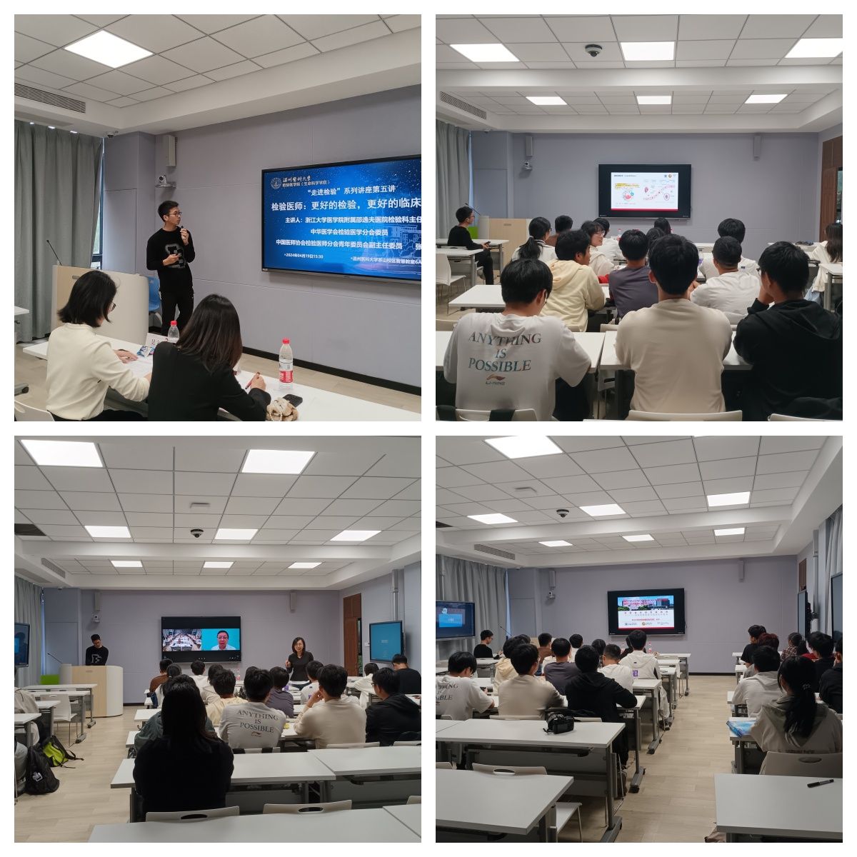 4月19日下午,第“走进检验”系列讲座在6A202教室举行。中国医师协会检验医师分会青年委员会副主任委员、浙江大学医公司附属邵逸夫医院检验科主任张钧教授与2023级临床医学(检验医师培养试验班)的同学们进行了交流学习探讨了检验的价值体现、标准化和个体化检验诊断、技术平台建设、研究和教学的功能、科室的团队建设及方向等相关内容。VSport体育生命科学公司)基础检验学系副主任吴文鹤教授班主任周燕老师出席讲座本次讲座由2023级临床医学(检验医师培养试验班)班长王省淦同学主持