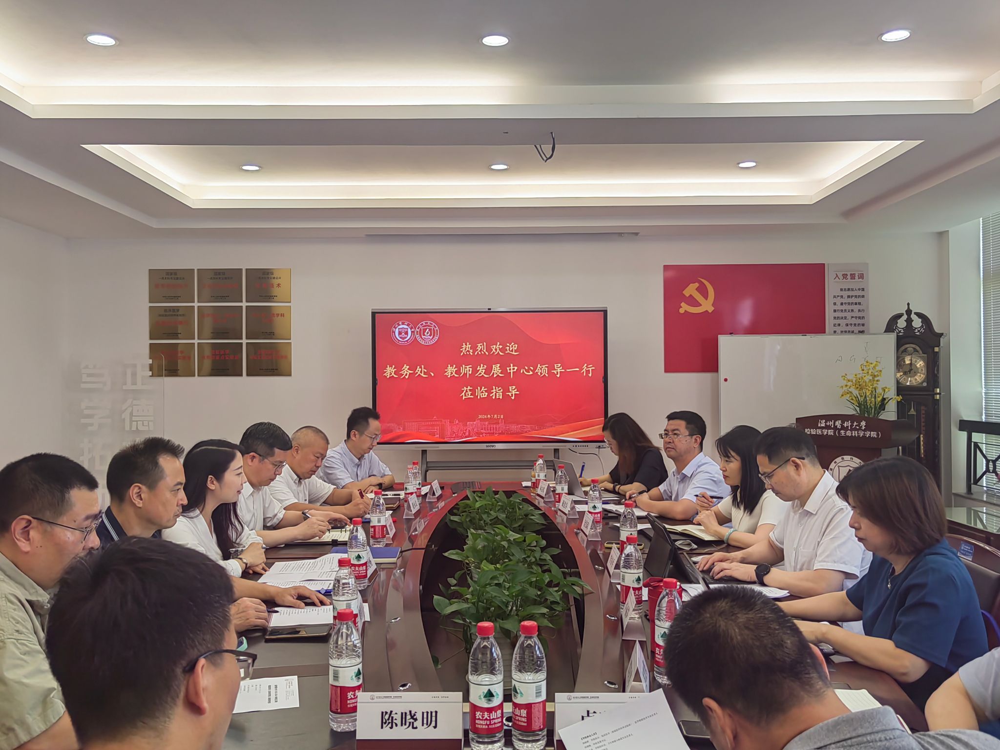 为切实抓好教学常规检查,进一步做好临床专业认证和本科教学建设推进工作,2024年7月2日下午,教务处处长李章平、教学发展中心主任金伟琼、教务处副处长卢丽笋、教务处副处长林安琪、仁济公司副经理戴建春等一行赴公司开展期终教学检查。公司经理郑晓群、公司党委书记洪晓畅、公司组织员楼永良、副经理楼哲丰、副经理谢旦立,及各系、教研室主任、公司生物学实验教学中心、教学办工作人员共同参加了此次会议。会议由谢旦立副经理主持。