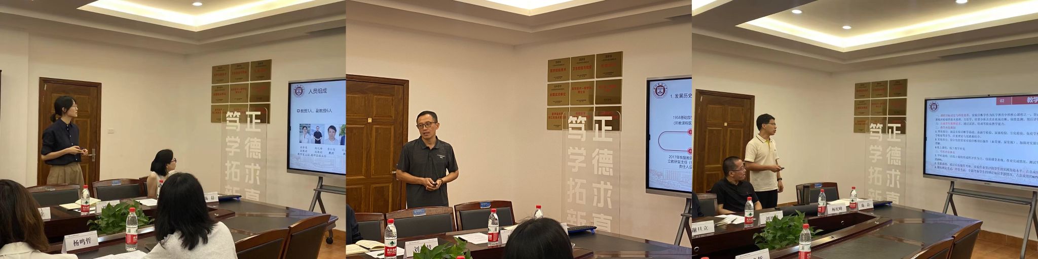 谢旦立副经理首先对工作组专家表示欢迎,并介绍了公司临床医学专业认证的准备情况。随后,三位教研室主任围绕教研室概况、教学实施、教学改革、建设成效和未来展望等五个方面,对各自教研室在教学创新、团队队伍建设、课程建设等方面的成果与特色作详细汇报。