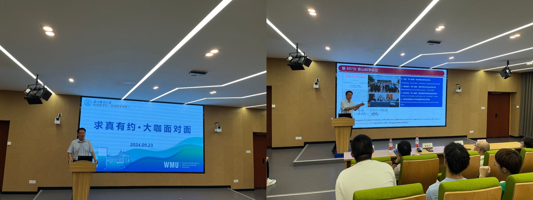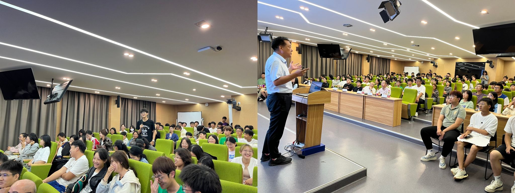 讲座上,陆家海教授分享了“同一健康”的理念,他指出,“同一健康”是以人类卫生健康共同体为目标,以国家为重点,立足未来,聚焦卫生安全、非传染性疾病与老龄化、气候变化、环境与健康、缺病少药等关键问题,助力于终结未来大流行病的理念。他鼓励各位新同学们培养家国情怀和世界健康共同体意识,在努力学好课程知识的基础上开阔专业视野、发展跨领域思维,积极投身于人类健康事业中,为中国健康和世界健康发展贡献自己的青春力量。