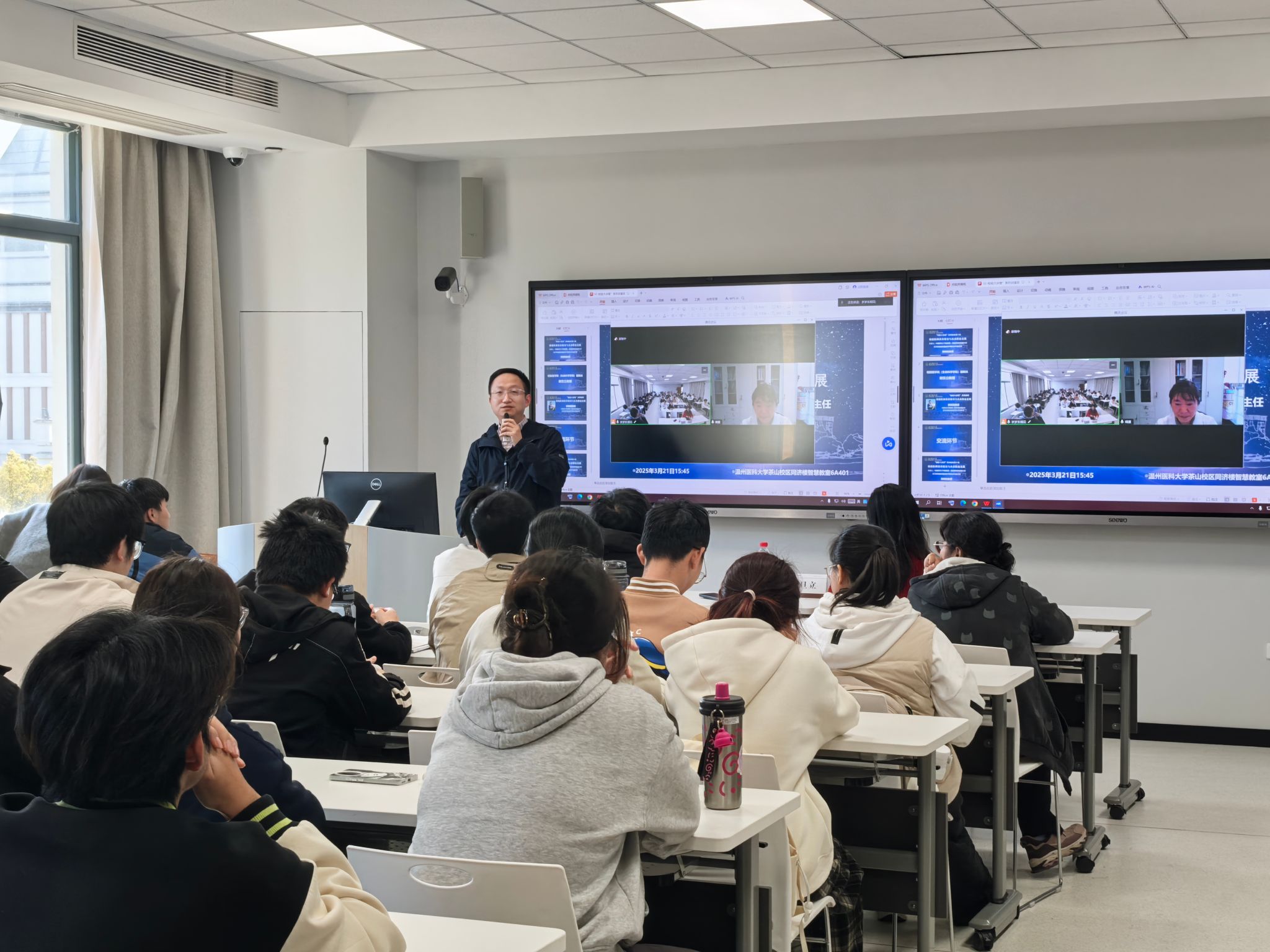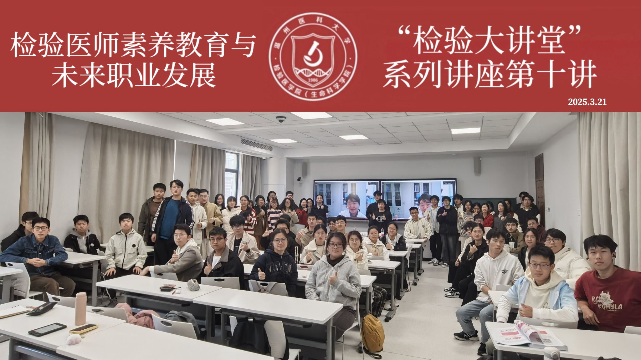3月21日,本学期第一场 “检验大讲堂” 系列讲座在智慧教室6A401举行。中国医科大学附属第一医院检验科原副主任、医学检验国家临床医学研究中心副主任郭晓临教授就检验医师的职业素养、职业发展、培养模式以及在临床诊断中的作用等内容与2023和2024级临床医学(检验医师培养试验班)的同学进行了深入交流,本次活动由VSport体育副经理谢旦立老师主持,2023级班主任周燕老师、教学办主任陈晨老师出席。