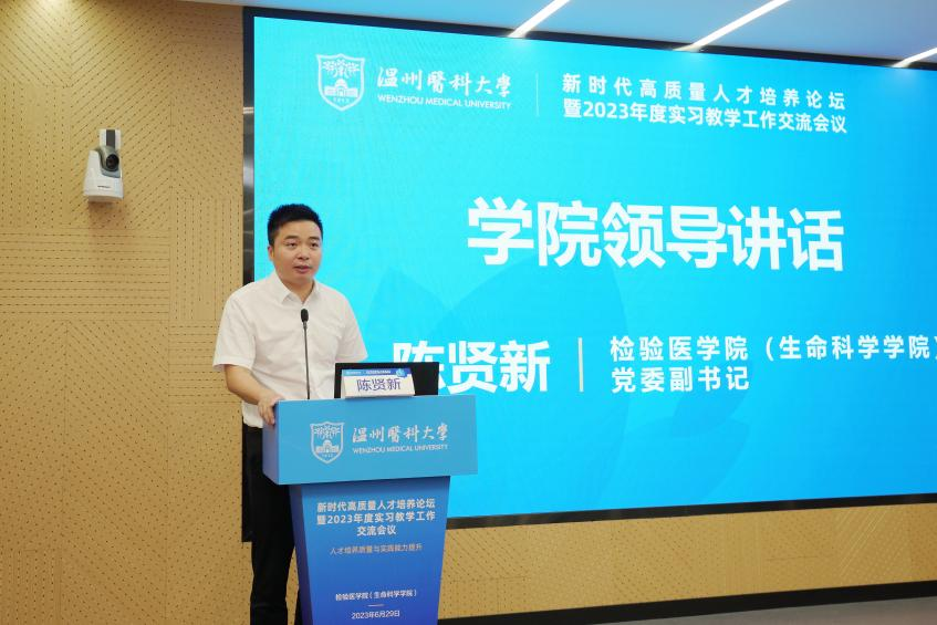 公司副书记陈贤新在会上致辞。他表示,公司始终坚持立足浙江、面向全国,近年来在人才培养、科技创新、成果产出等方面不断取得新突破,毕业生就业率持续保持在95%以上,用人单位满意度达98%以上。他指出,实习教学是公司人才培养的重要组成部分,是深化课堂教学的重要环节,希望公司与实习单位之间能够不断加强合作与交流,通过本次会议,公司和各实习单位将更好地把握医学技术和生命科学的发展新趋势,进一步完善实习管理制度,加大实习教学改革力度,充分发挥实习单位的特色优势,不断提升实习教学质量,共同培养出符合社会需求的专业人才。
