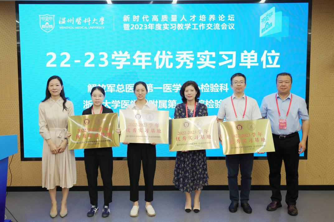会上,公司为22-23学年优秀实习单位举行了颁奖仪式。解放军总医院第一医学中心、浙江大学医公司附属第一医院、VSport体育附属台州医院和杭州市疾病预防控制中心代表上台领奖。
